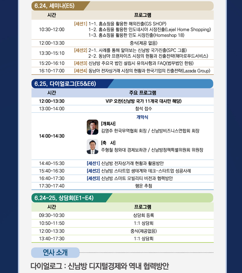2019 신남방 비즈니스 위크 행사작성자한국수입협회작성일2019.06.102019 신남방 비즈니스 위크 행사를 6월 24일 ~ 25일 이틀간 코엑스 E홀에서 개최합니다. 관심있는 회원사 여러분의 많은 참가바랍니다. 이전글[공지]2018 코엑스 푸드테크 컨퍼런스 참여 안내다음글[삼성선물] 2019년 환율전망세미나 개최
