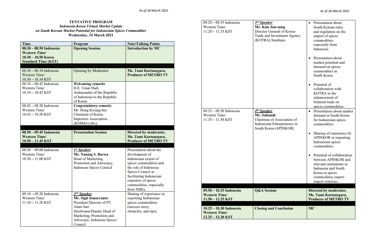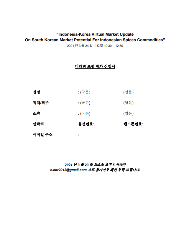 "Indonesia-Korea Virtual Market Update: 인도네시아 향신료 제품의 대한국 수출 확대 방안" 포럼을 개최하고자 합니다.