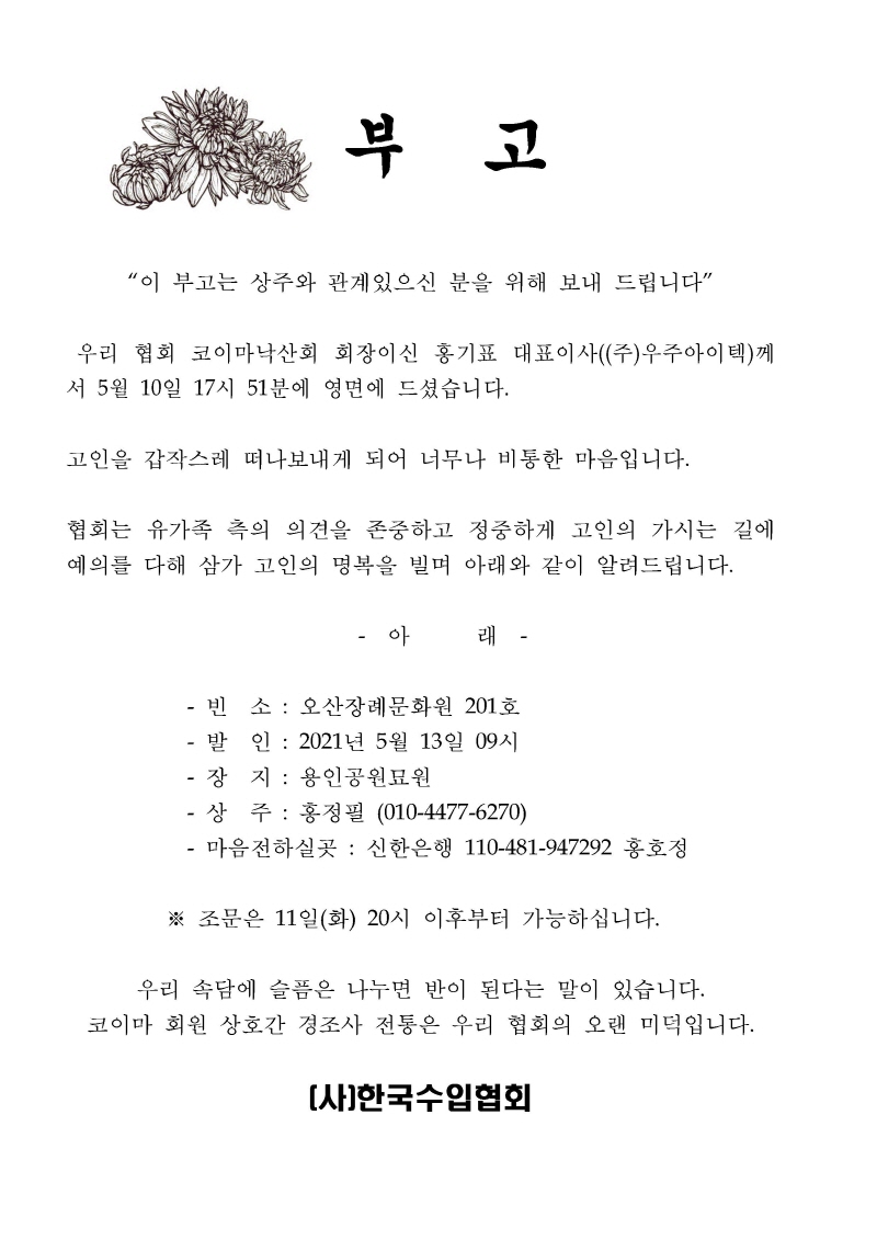 홍기표 대표이사 (코이마낙산회회장) 별세