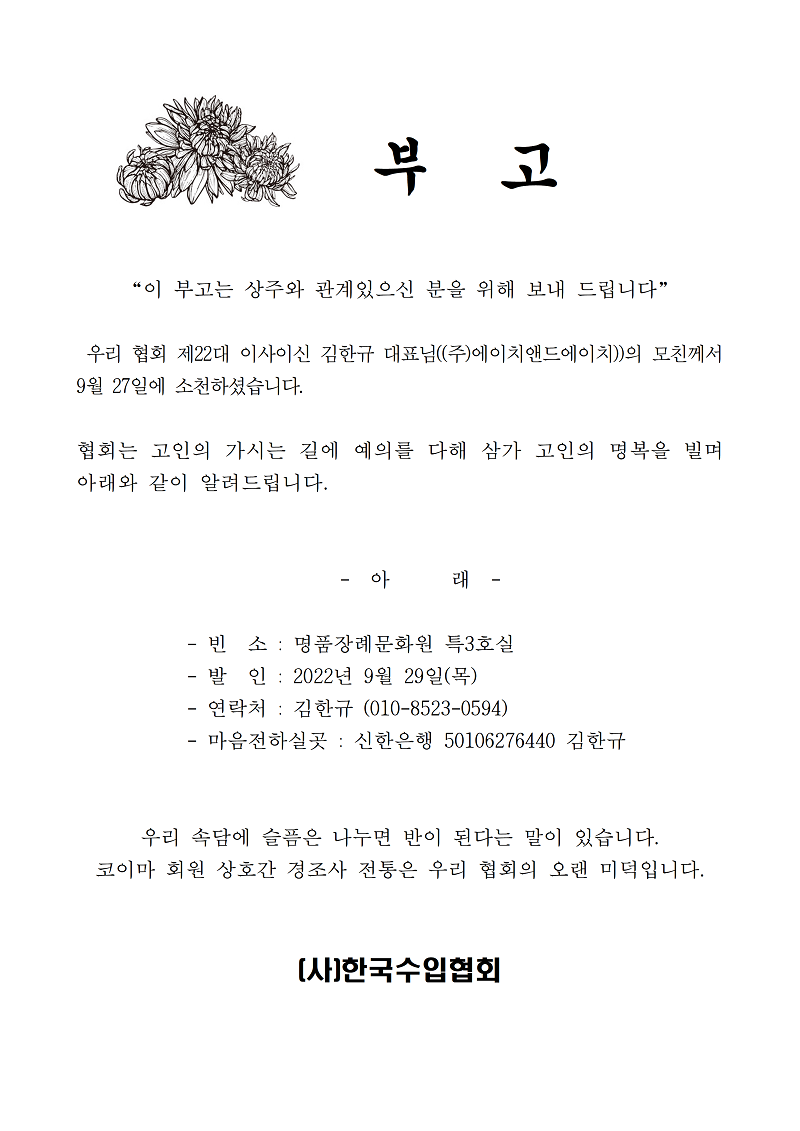 김한규 대표이사 모친상