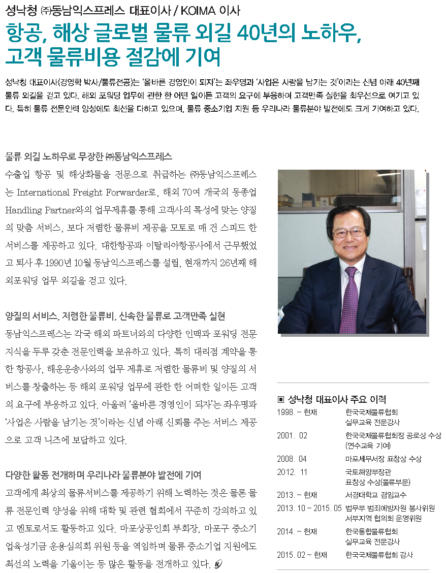 성낙청 (주)동남익스프레스 대표이사 / KOIMA 이사