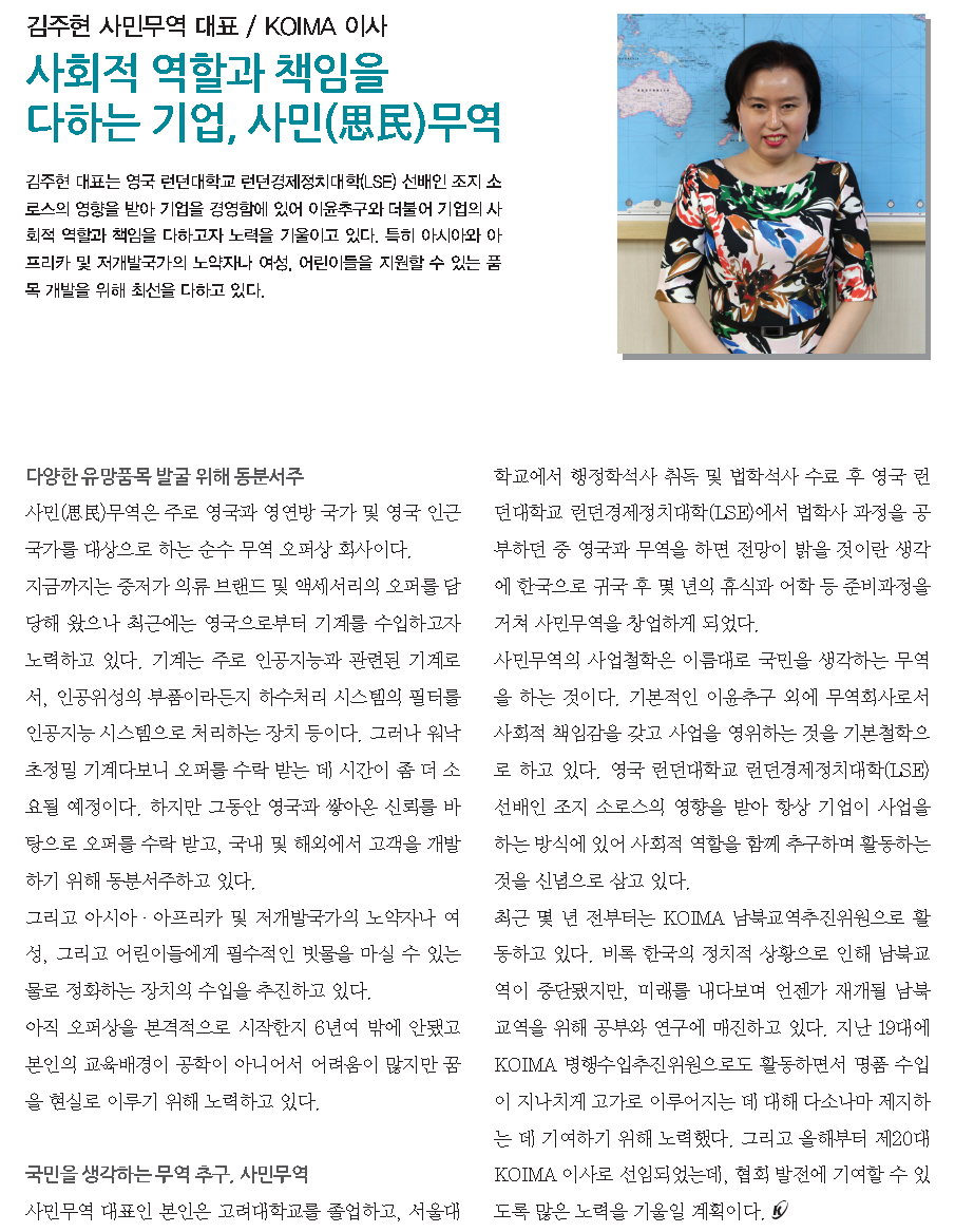 사회적 역할과 책임을 다하는 기업, 사민(思民)무역