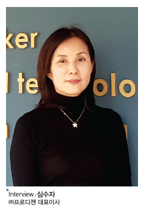 ㈜프로디젠은 1998년 설립, 대한민국 최초로 PRP(혈소판 풍부 혈장) KIT를 국내 기술로 개발하여 상용화시킨 바이오업계의 선두주자이다. 2008년 국내 최초의 PRP KIT인 PROSYS PRP를 런칭, 자체 공장 GMP 시설에서 생산하고 있다. 10가지가 넘는 국내 특허 및 각국의 기술특허를 보유함으로써 25개국에 수출하고 있으며, 유럽 판매량도 빠르게 증가하고 있다. 심수자 대표는 한 우물을 파더라도 최고의 결과를 만들겠다는 신념 아래 오늘도 최선의 노력을 기울이고 있다. |