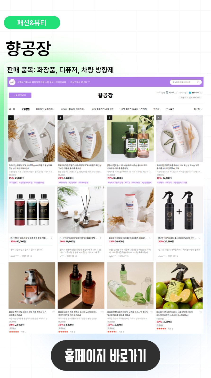 (주) 향공장 - 향공장작성자한국수입협회작성일2025.07.25 판매 품목: 화장품, 디퓨저, 차량 방향제 이메일: antiauto83@naver.com 첨부파일 (1개)썸네일-055.jpg (67.2 KB)다운로드 이전글(주) 남평아이티 - 남평아이티다음글(주) 장우에프앤비 - 장우가든